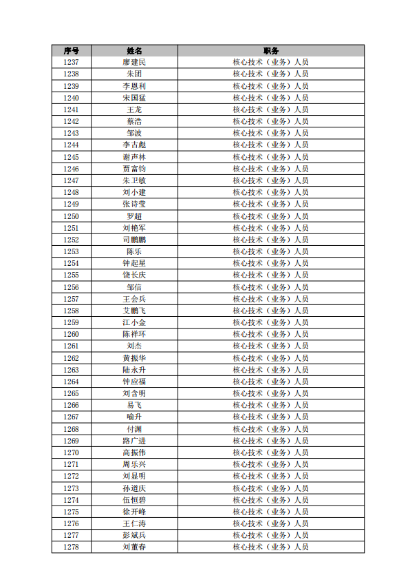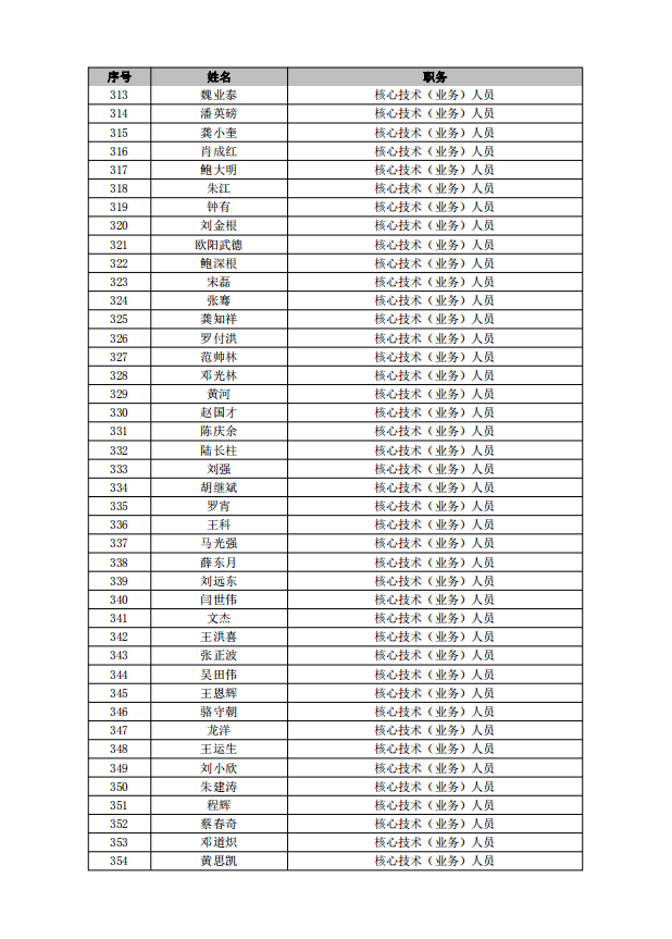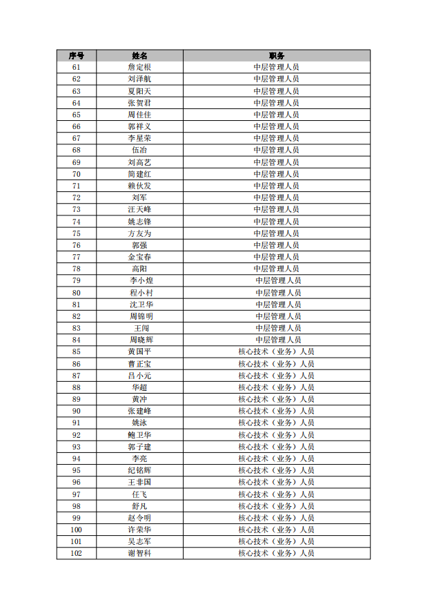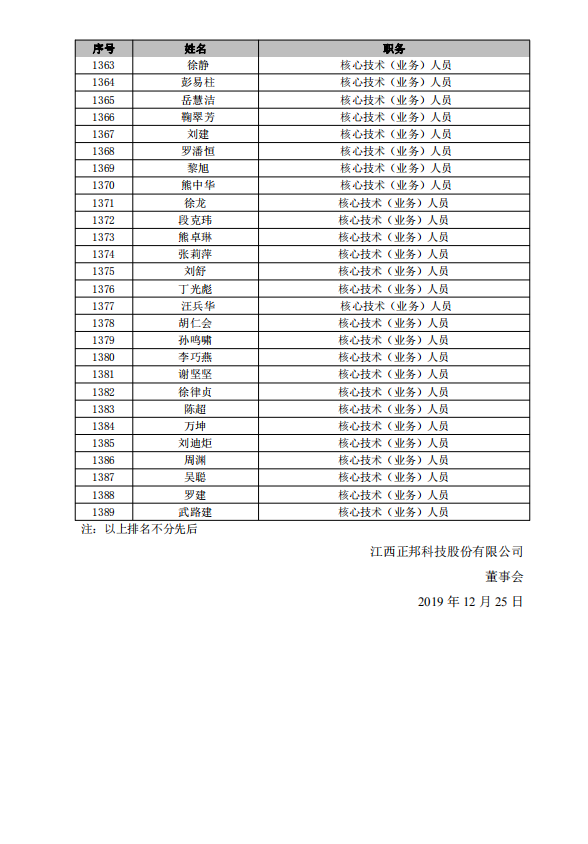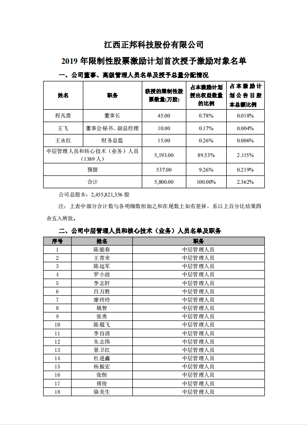 江西正邦科技股份有限公司2019年限制性股票激励计划首次授予激励对象名单